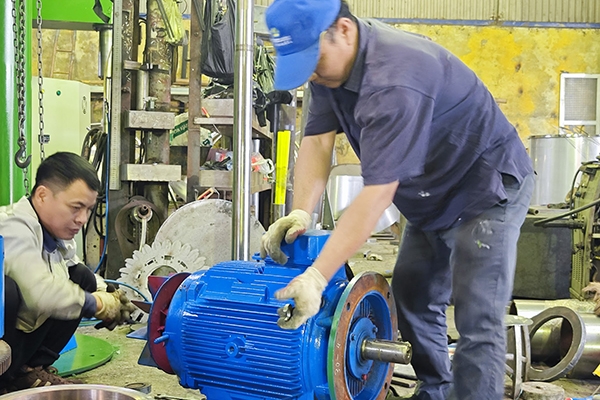 Động cơ: Động cơ hay còn gọi là (motor) có vai trò chuyển hóa điện năng thành cơ năng, từ đó tạo chuyển động xuay tròn trực tiếp lên trục khuấy và đĩa khuấy thông qua dây curoa. Tùy vào mục đích sử dụng khác nhau để lựa chọn công suất động cơ cho phù hợp, công suất động cơ phổ biến từ 11kw, 15kw, 22kw, 30kw, 37kw, 45kw, 55kw, 75kw, 90kw, 110kw đến 250kw.